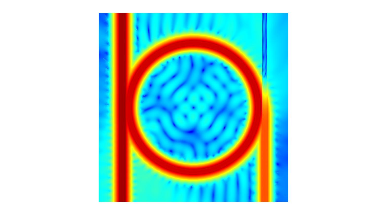 上述器件的散射模擬涉及兩個步驟。首先,計算進入器件的波導模式。這些都不是像平面波源那樣的解析解,因此它們是用有限元數值方法得到的。對於二維環形共振腔,計算了一維傳播模式(平板波導模式)。