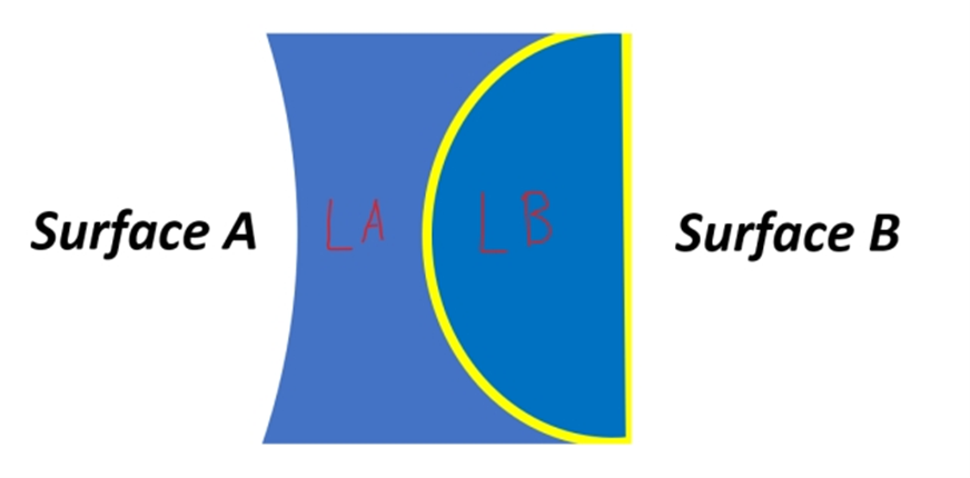 PanDao的膠合工藝涵蓋兩個光學表面的膠合,例如將透鏡B(LB)精密膠合至透鏡A(LA)表面: