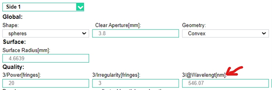 PanDao軟體當前可以接受ISO10110標準定義的形狀精度參數格式3/A(B),其中A代表功率公差,B代表不規則性。