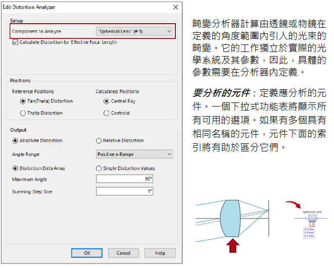 鏡頭是成像系統設計的一個組成部分。因此,對任何光學工程師來說,能夠詳細分析它們的性能是至關重要的。一個眾所周知的不利影響是畸變,它導致光束的橫向位置相對于焦平面的參考位置的偏差。在這個使用案例中,我們介紹了一個工具,以球面透鏡為例,研究這種效應。