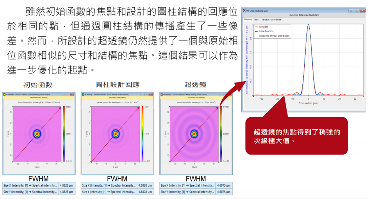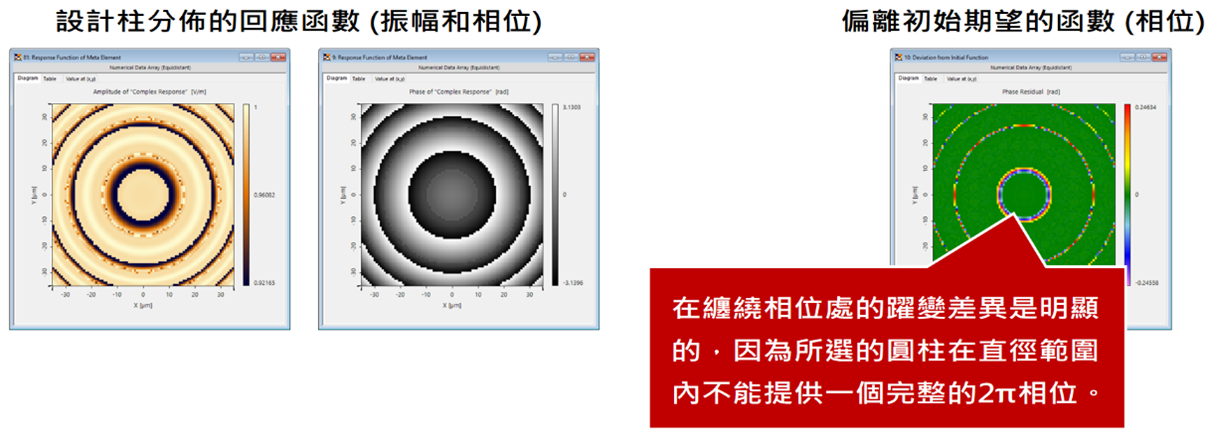 在圓柱分佈設計期間,超透鏡的預期回應和與初始期望函數的偏差也作為輸出傳遞: