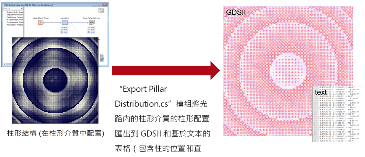 為了匯出所設計的柱形結構,通過一個模組支援GDSII和基於文本的匯出。