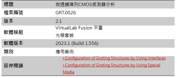 近幾十年來,CMOS感測器的圖元尺寸已經從~10µm縮小到~2µm,甚至更小。通過減小圖元尺寸,可以獲得更高的空間解析度。同時,這也給每個圖元上微透鏡的功能帶來了問題。在本例中,我們研究了圖元尺寸等於或低於2µm的CMOS感測器的性能。採用嚴格的FMM/RCWA進行模擬,以驗證微透鏡的有效性。