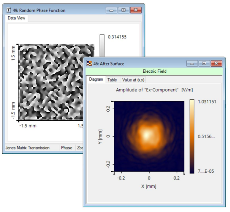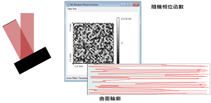 當設計光學元件或元件時,由於製造工藝引入的偏差,最終元件的功能和理想模型並不一樣。為了在本示例中模擬此效果,我們使用隨機函數來創建粗糙曲面。此外,還研究了由表面不平度引起的散射效應。