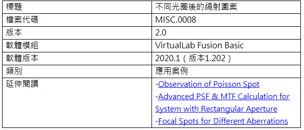 不同光圈後的繞射圖案