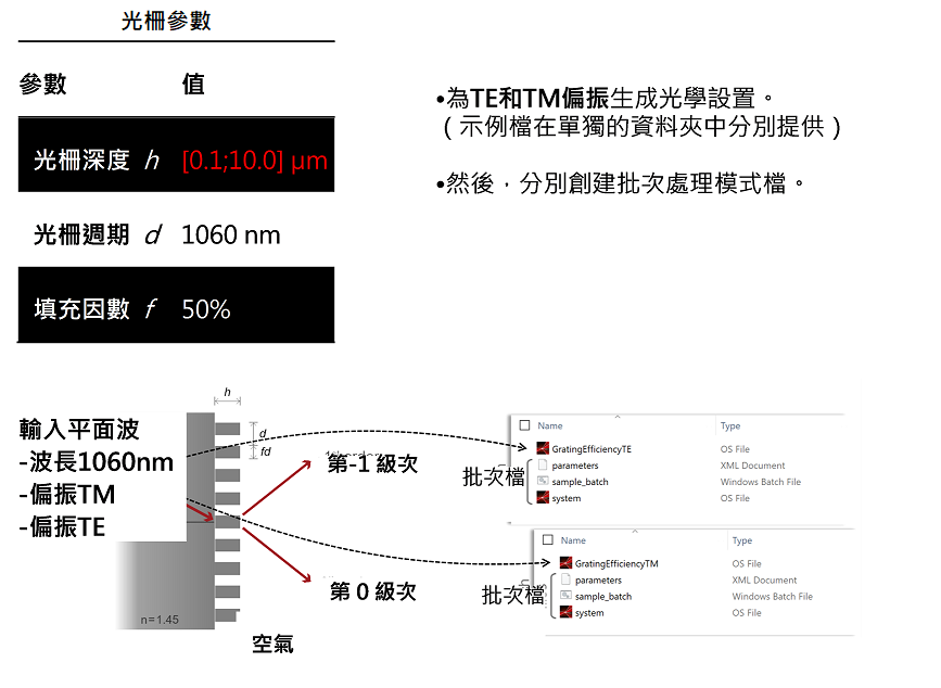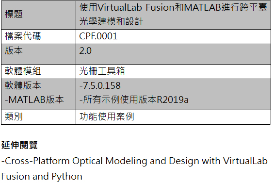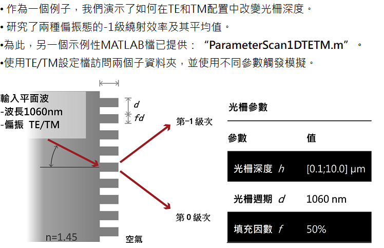 • 使用示例檔,請直接將MATLAB檔ParameterScan1D.m複製到工作資料夾中,調整工作路徑,然後執行。